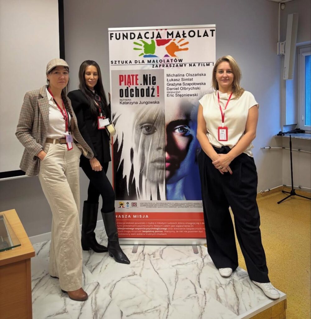 Inicjatywa łącząca sztukę oraz wsparcie dla młodych. Ekranizacja filmu Katarzyny Jungowskiej Piąte: nie odchodź!, spotkanie z reżyserką, warsztaty informacyjne i profilaktyczne „Jak i kiedy pytać o pomoc”. Zapraszamy domy kultury, uczelnie do współpracy.